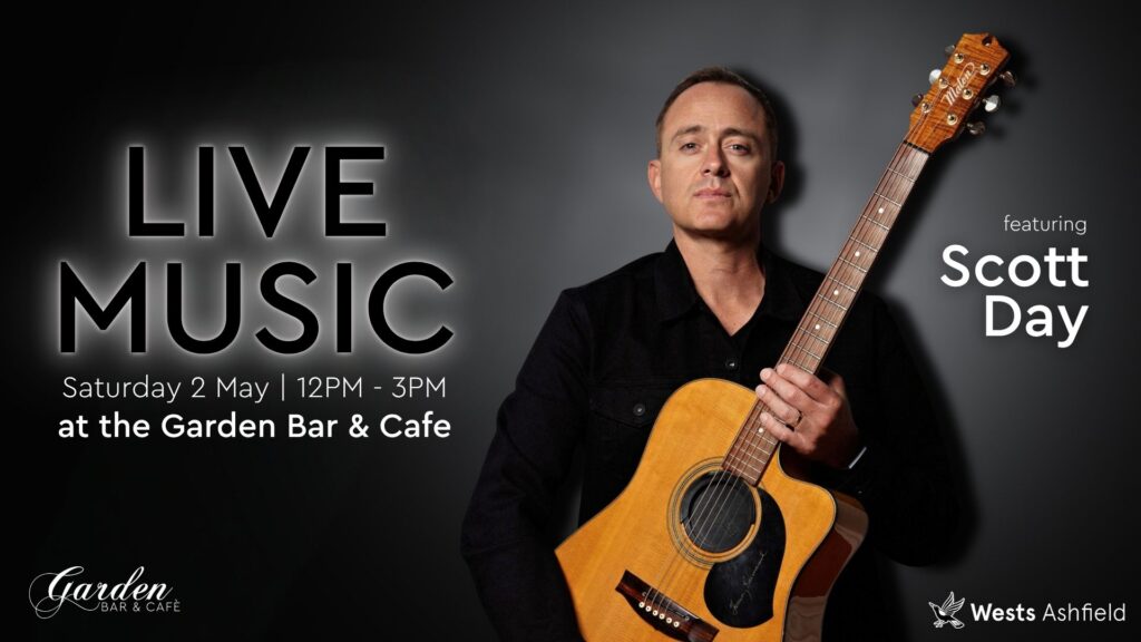 Join us at The Garden Bar & Cafe Saturday 2 May for an afternoon of acoustic sounds by Scott Day.